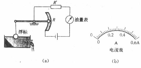 (3)已知油量表(电流表)的量程为0.6A,表盘如图(b)所示,电源电压为12V,设计时规定,通过油量表的最小电流为0.1A。按照这-规定,保护电阻