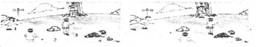 3.几个孩子往草地上做游戏(如下左图)。当树旁的小女孩转过身来时,每个人的位置如下右图所示,则没运动的小孩编号是
