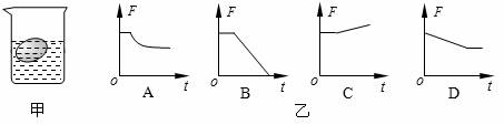 35.小明看到鸡蛋浮在盐水面上(如图甲),他沿杯壁缓慢加入清水使鸡蛋下沉.在此过程中,鸡蛋受到的浮力F随时间t的变化图像可能是图乙中的