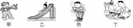 A.甲图中小孩把橡皮筋拉长,势能转化为动能
