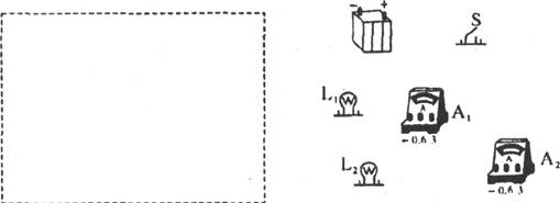 5.如下图所示,现有一个电池组、两只电流表A1和A2、两只相同小灯泡L1和L2、一个开关、导线若干(用笔画线代替导线)。请你设计一个电路,要求开关闭合后L1与L2并联;两只电流表接在电路中,且电流表A1的示数大于A2的示数。