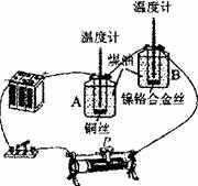 3.小明和小红想利用如下图所示的装置探究“导体产生的热量与电阻大小的关系”。两瓶煤油中都浸泡着一段金属丝,烧瓶A中的金属丝是铜丝,电阻比较小,烧瓶B中的金属丝是镍铬合金丝,电阻比较大。温度计显示煤油的温度。