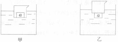 13.如下图所示,容器中装有一定质量的水,先后按甲、乙两种方式将物体a和小玻璃杯漂浮在水面上。设甲、乙两图中物体a和小玻璃杯共同受到的浮力分别为
