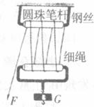 14.小明同学利用圆珠笔杆、钢丝、细绳制成了如下图所示的滑轮组,用其匀速提升重物。下列说法正确的是