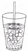 19.夏天,小明从冰箱冷冻室中取出几个冰块,放入装有常温矿泉水的杯中。过了一会儿,他用吸管搅动冰块,发现这几个冰块“粘”到一起了,如下图所示。请解释这个现象。