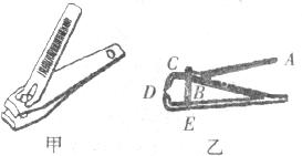 22.如下图所示,甲是我们常使用的指甲刀,乙是它的示意图。请细心观察,此指甲刀哪些部位分别应用了哪些物理知识及原理,请你写出三个应用不同原理的例子。
