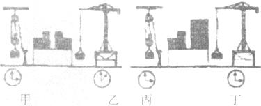 4.如下图所示,是建筑工地常用来搬运砖块的两种机械(滑轮组和起重机)。观察图中甲、乙两图,可获得的信息有______________________________,观察图中丙图和__________图可得出:在相等的时间内,起重机比滑轮组做的功多。