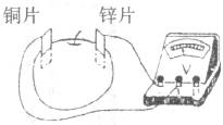4.如下图所示,在研究“水果电池电压与哪些因素有关”的实验中,小丽作出的猜想是:水果电池电压与构成两电极的不同金属材料有关。请你再作出两条不同的猜想:
