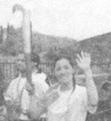 5.2008年3月24日,北京奥运会圣火在奥林匹亚被成功采集,并开始在希腊境内传递。下图为中国火炬手游泳名将罗雪娟手持火炬进行传递。若她在火炬传递中的速度是9