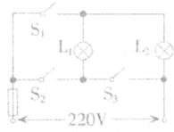 9.下图所示电路中,L1和L2分别为“220V 15W”和“220V 40W”的白炽灯泡,为了使L1、L2都发光,且L1比L2亮,应闭合的开关为__________;当开关__________闭合时,保险丝会被熔断。