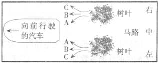 23.我们经常可以看到这种现象:汽车在马路上快速驶过以后,马路两边的树叶会随风飘动,如下图所示,马路两边的树叶会沿着A、B、C哪一个方向飘动?请写出你的猜想并说明理由。