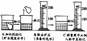 (2)因矿石体积较大,放不进量筒,因此他利用一只烧杯,按下图所示的方法进行测量,矿石的体积是________________cm3