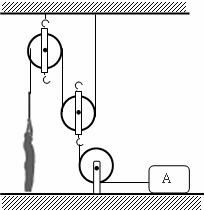 39.体重为510N的人,站在水平地面上对地面的压强为p1, 如图所示,用滑轮组拉物体A沿水平方向做匀速运动,此时人对地面的压强为p2,压强变化了2750pa。已知人一只脚的面积是200cm2,滑轮组的机械效率为80%。(不计绳重和摩擦,地面上的定滑轮与物体A相连的绳子沿水平方向,地面上的定滑轮与动滑轮相连的绳子沿竖直方向,人对绳子的拉力与对地面的压力始终竖直向下且在同一直线上,)。求:(1)绳对人的拉力;(2)物体A与地面的摩擦力;(3)若在物体A上再放一个物体B,滑动摩擦力增大了30N,此时该装置的机械效率是多少?(7分)