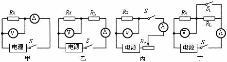 31.用“伏安法测电阻”的实验中,老师提供了以下器材:几节干电池做电源、已知阻值的电阻R01个、最大阻值为50Ω的滑动变阻器1个、被测电阻Rx,开关2个,电压表和电流表各1只、导线若干。实验前老师启发同学们,为了使测定的电阻值更精确,采用多次测量取平均值的方法。甲、乙、丙、丁四个小组分别设计了以下可测电阻Rx的四个方案(如图),依据实验方案回答: