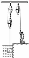 34.小文的体重为600 N,当他使用如图所示的滑轮组匀速提升水中的体积为0.01m3的重物A时(重物始终未出水面),他对地面的压强为8.75×103
