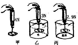 8.如下图所示,物体浸没在水中时,所受到的浮力为_______N;如果直接将该物体投入水中,该物体将_______(填“上浮”、“悬浮”或“下沉”);从图乙、丙可以看出浮力的大小与液体的___________有关.