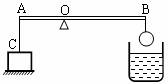 23.如图所示,杠杆在水平位置处于平衡状态,细绳AC沿竖直方向并系于正方体上表面的中央。若上移玻璃杯使小球没入水中,杠杆AB仍在水平位置平衡。在杠杆所处的前后两个状态中,正方体对水平地面的压强变化了400Pa。已知正方体的边长为10cm,小球的体积是2×10-4m3,则:AO:OB为 。
