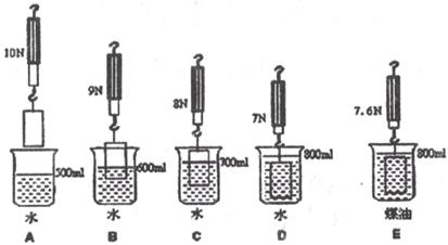 9.小明同学用一个弹簧测力计、一个金属块、烧杯、水、细线,对浸在液体中的物体所受的浮力进行了探究。下图表示探究过程及有关数据。