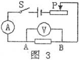 7.小刚同学用图3所示的电路研究电流跟电阻的关系。在实验过程中,当A、B两点间的电阻由5Ω更换为10Ω后,电流表的示数由0.4A变成了0.3A,他下一步的操作正确的是( )
