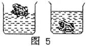 13.如图5所示,将一只玩具青蛙放入甲液体中,它能漂浮于液面;把它放入乙液体中,它却沉入底部。对这种现象的解释,下列说法正确的是( )