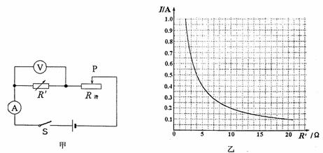 34.小阳用图甲所示的电路,研究通过导体的电流与导体电阻的关系。电源两端电压为6V且保持不变,实验过程中,他做了六次实验,每次改变电阻箱R'的阻值后,通过调节滑动变阻器始终保持R'两端的电压不变,记下相应的电流值。根据记录的六组数据,他在方格纸上描出了电流I与电阻箱阻值R'的关系图线,如图乙。(3分)
