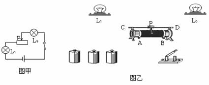 26.图中所提供的实验器材, 应怎样连接才能使L1和L2两灯串联在电路中, 并用电流表测L1的电流, 用电压表测L2两端的电压:(1)画出它的电路图。 (2)在图中用笔画线表示导线, 连接好实物电路。