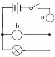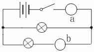24.在下图所示的电路中a、b 表示电表, 试在图中根据电路的要求, 标出哪个是电流表,哪个是电压表。