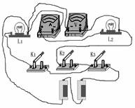 25.根据图所示的实物电路, 在右边的空白处画出它相应的电路图, 并在电路图上标明电流流动的方向。