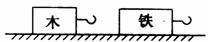 6、如图所示,同一水平桌面上放有长方体木块和铁块各一个。现想探究木块和铁块的下表面谁更粗糙,请你只利用一个量程满足实验要求的弹簧测力计,设计一个实验来验证你的猜想.写出实验的步骤和分析实验的结果.