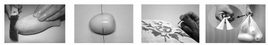 A.刀切芒果 B.线切鸡蛋 C.用针绣花 D.厚纸片垫提手处