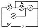 18.如下图所示的电路中,L1和L2是两只标有“6V3W”字样的小灯泡,电源电压6V.闭合开关两灯正常工作.则a是________表,b ________表,a表的示数是________.