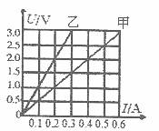 7.两定值电阻甲、乙中的电流与电压关系如图所示,现在将甲和乙串联后接在电压为3V的电源两端,下列分析正确的是