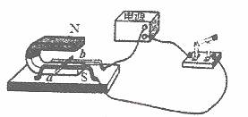 9.下图为研究磁场对通电导线作用的实验装置,当接通电源,有电流由a至b通过导线ab时,它将受到磁场力作用而向左运动,则