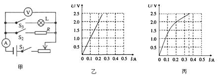 (2)断开S2,闭合S1、S3,调节滑动变阻器,测量灯泡L两端的电压和通过的电流,根据测量数据绘制成如图丙的U-I关系图像。由图像分析,当伏特表示数为2V时,灯泡L的电阻RL=___Ω;若灯泡L的额定电压为2.5V,小灯的额定电功率为 W;