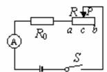 5、如图所示,设电源电压保持不变,R0=10W。当闭合开关S,滑动变阻器的滑片P在中点c 时,电流表的示数为0.3A ,移动滑片P至b 端时,电流表的示数为0.2A .则电源电压U 与滑动变阻器的最大阻值R分别为: