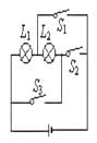 8、如图所示电路中,当______闭合时,L1、L2 并联;当______闭合时,电路会发生短路,损坏电源。