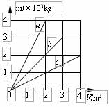 5.分别由不同物质a、b、c组成的三个实心体,它们的质量和体积的关系如图所示,由图可知