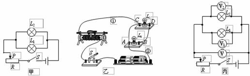 (3)接下来,他们按图丙所示电路图连接了三个电压表。实验过程中,通过调节滑动变阻器使电压表V1的示数如图所示,则电压表V的示数是 V,若L2标有“2.5V,1W”字样,此时通过L2的电流是 A。
