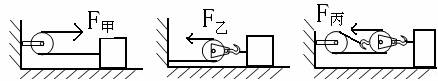 14、同一物体沿相同水平地面被匀速移动,如下图所示,拉力分别为F甲、F乙、、F丙,不记滑轮与轻绳间的摩擦,比较它们的大小,则