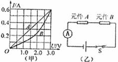 4.有两个电路元件A和B,流过元件的电流与其两端电压的关系如下图甲所示。把它们串联在电路中,如下图乙所示。闭合开关S,这时电流表的示数为0.4A,则电源电压和元件B的电功率分别是