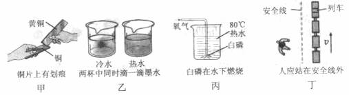D.丁图:由于流体压强的大小与流速有关,因此人应站再安全线外