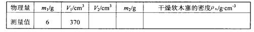 33.小明用天平、量筒和水(ρ水=1.0g/cm3)等器材测干燥软木塞(具有吸水性)的密度时,进行了下列操作:①用调好的天平测出软木塞的质量m1;②将适量的水倒入量筒中,读出水面对应的示数V1;③用细铁丝将软木塞浸没再装有水的量筒中,过段时间后,读出水面对应的示数V2;④将软木塞从量筒中取出,直接用调好的天平测出其质量m2。