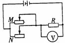4.如图所示,滑动变阻器M的总电阻为10Ω,滑动变阻器N的总电阻为200Ω,电阻R的阻值约为20Ω。为了使电压表的示数略微增大,应该