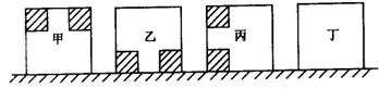 12.有四个完全相同的均匀正方体木块放在水平桌上,现将甲、乙、丙截去完全相同的两截面均为正方形的长方体(图中阴影部分)后,它们对桌面的压强分别为