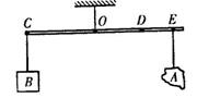 的金属块B挂在硬棒左端C处,另外找一个重物A挂在硬棒右端,调节重物A的位置,使硬棒在水平位置平衡,此时重物挂在硬棒上的位置为E,如图所示。下面是小东测出