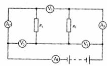 (5)救援人员在“库尔斯克”号发现了记录潜艇各种信息的“黑匣子”,其某一部件外壳上三个电压表的示数分别为U1、U2、U3;三个电流表的示数分别为I1、I2、I3,它内部的电路结构图所示,试分别写出U1、U2、U3之间的数学关系表达式和I1、I2、I3之间的数学关系表达式。