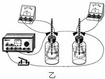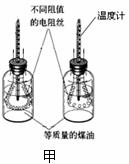 为了验证自己的猜想,他选择了如图甲所示的装置(除电阻丝阻值不同外,其余条件均相同)及电源、开关、电压表、导线若干。他将两电阻丝串联后接入电路,如图乙所示。