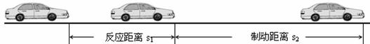 33、汽车追尾是高速公路上常发生的交通事故,其重要原因是遇到意外情况时不能立即停车。研究发现,司机从看到情况到踩刹车需要一段时间,这段时间叫反应时间;在反应时间内汽车要保持原速前进一段距离,这段距离叫反应距离;从踩刹车到车停止,汽车还要前进一段距离,这段距离叫制动距离。如图所示。