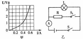 35、如图甲所示,当开关S接a时,移动滑动变阻器的滑片P,根据测出的电流、电压值,画出了定值电阻R0的U-I图像;当开关S接b时,同样根据测出的电流、电压值,画出了灯泡L的U-I图像,如图乙所示。