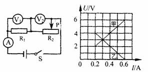 10.图的电路中,电源电压恒定.闭合开关S后,调节滑动变阻器,两电压表的示数随电流变化的图象如图所示,根据图象可知: (选填“甲”或“乙”)是电压表